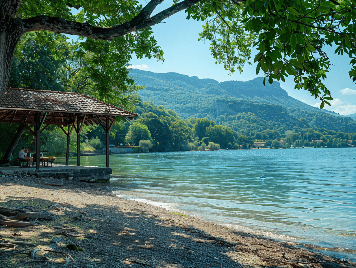 Au bord du lac du Bourget, la plage de Châtillon s’étend paisiblement, offrant aux visiteurs un cadre enchanteur. Nichée entre montagnes et eaux cristallines, cette plage n’est pas seulement un havre de détente, mais aussi un lieu chargé d’histoire et de légendes. Les anciens racontent que les rives de Châtillon étaient autrefois fréquentées par des moines en quête de sérénité.